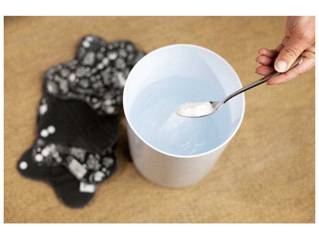 Díky svým dokonale čisticím, dezodoračním a antimikrobiálním účinkům by měl být prášek přidán do vody, ve které necháváte použité vložky před praním odmočit.